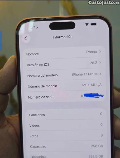 Preço: 750 €iPhone 17 Pro Max Laranja