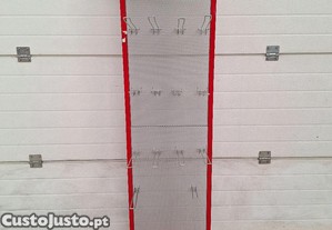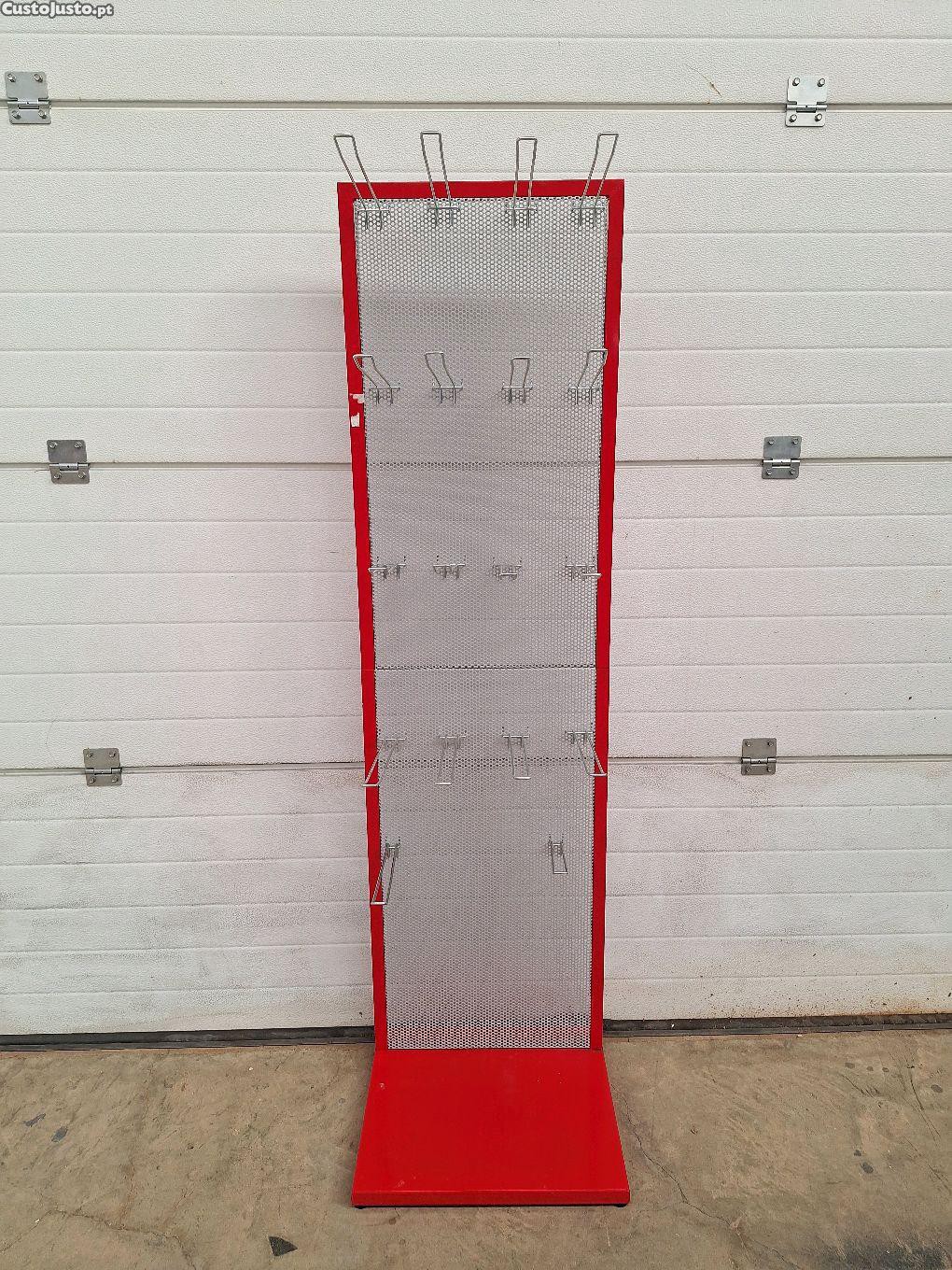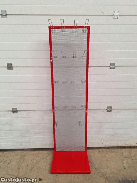 expositor em aço termolacado multiusos, com ganchos com 30cm de comprimento que se podem ajustar no painel de chapa perfurada.