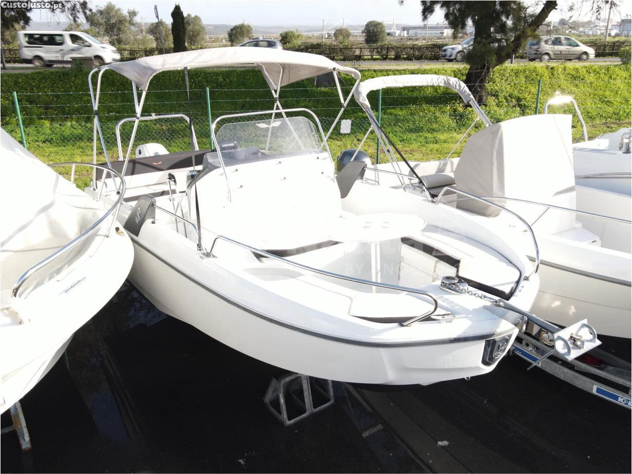 Com lotação para 8 pessoas (sim, 8 oficialmente, nada de cabem mais dois à confiança ), categoria CE C8/D10, calado de 0,8 m e uma altura de 1,8 m, é perfeito para navegar na costa do Algarve, explorar grutas, fazer ancoragens tranquilas ou simplesmente desfrutar de um dia de sol como deve ser. É o típico barco open que transforma um domingo banal num dia digno de fotografia aérea.
