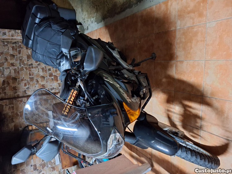 Honda transalp 650 de 2001 em bom estado de conservação, pneus Novos Mitas Terra Force motor muito fiável como a honda nos habituou. Conta com 56000km, com revisões sempre em dia, bateria nova colocada este mês, punhos novos, crash bar e faróis auxiliares led, kit transmissão aos 45000km, suporte telemóvel e carregador usb3.0, viseira givi mais alta, topcase 2 capacetes. Bons consumos na media de 5.5 em andamento misto. Possivel interesse em troca mais acerto da minha parte por jipe longo nissan terrano, vitara, pajero, l200 ou mercedes e220 c220