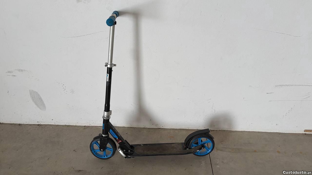 Vendo trotinete de criança/jovem da marca Oxelo (Decathlon), modelo Mid com rodas grandes. É uma trotinete robusta, ideal para percursos urbanos e lazer, com a vantagem de ser totalmente dobrável para facilitar o transporte no carro ou arrumação em casa.
