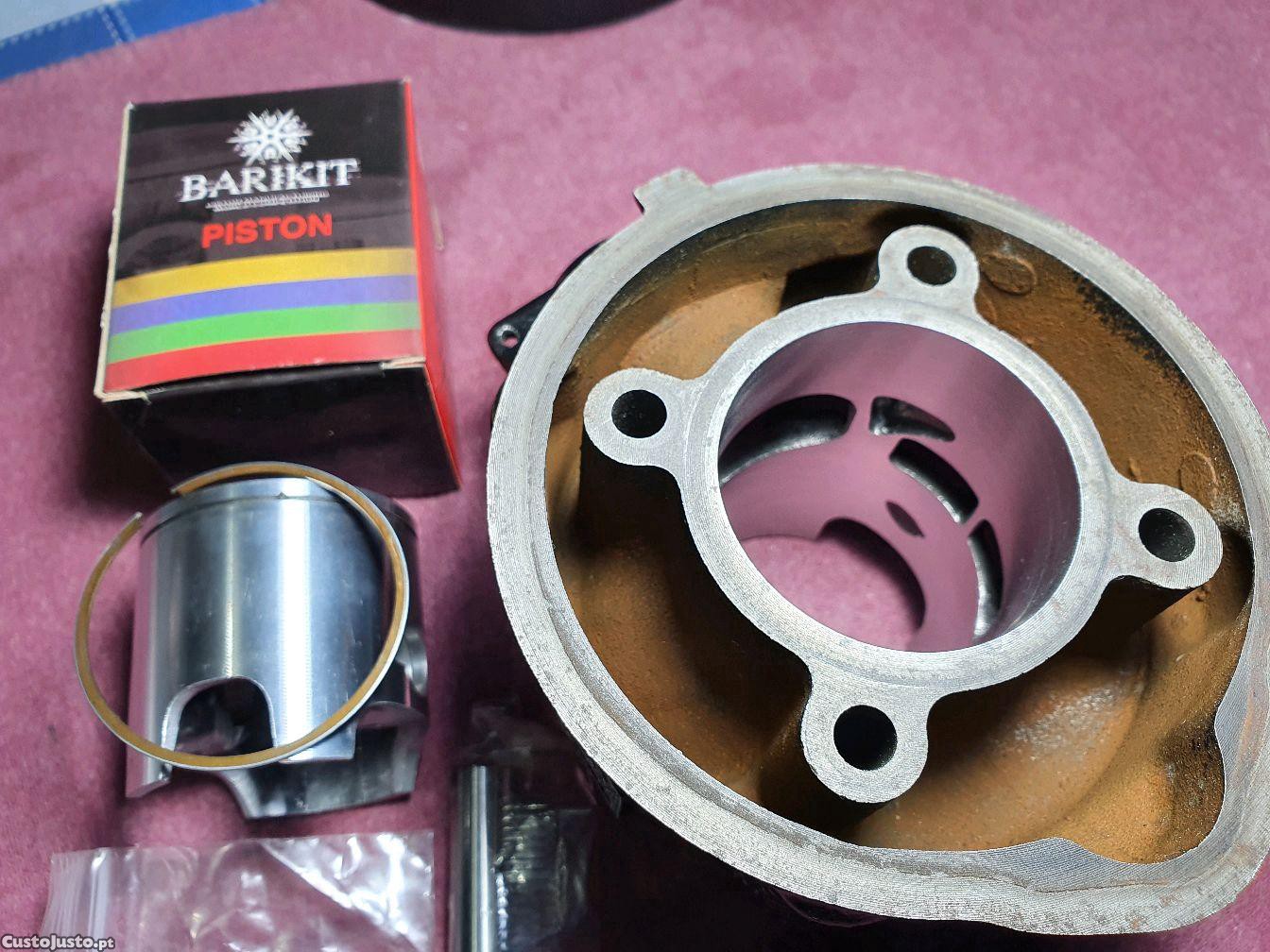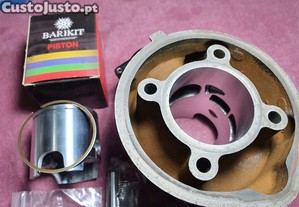 Cilindro Top Performance "Negro" na medida 50.25mm para motores AM5/AM6. Totalmente preparado para máxima potência, boosters de escape. Pistão trabalhado e aligeirado para óptima performance, 1 segmento em lâmina. Única imperfeição é visível nas últimas fotos, um lado do booster de escape abriu para o canal do perno, o que não afecta o desempenho depois de montado e apertado.