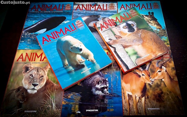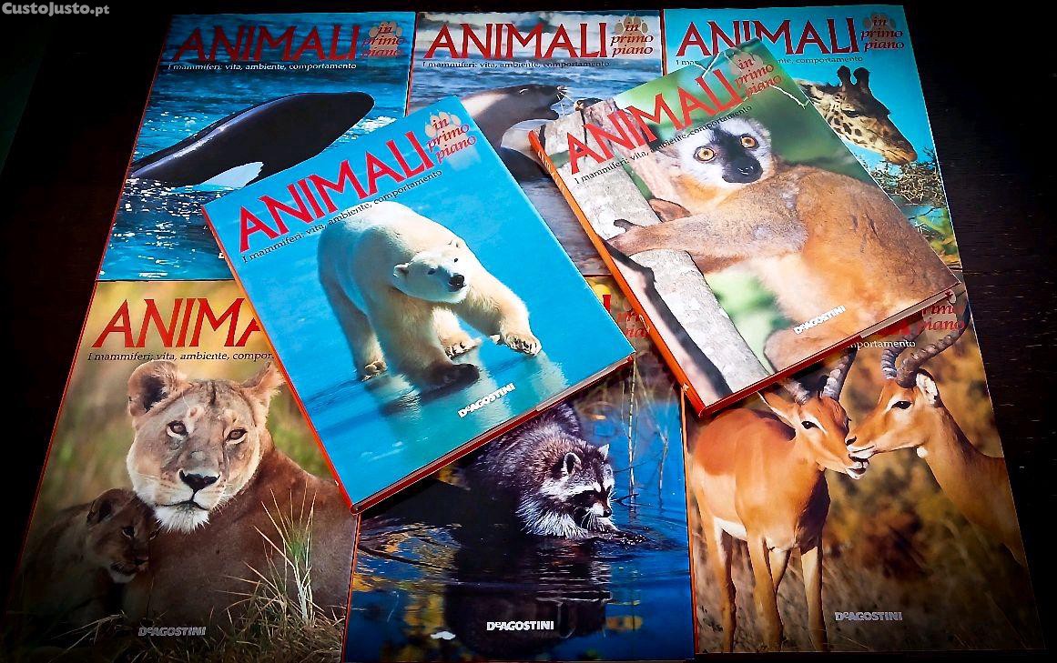 Coleção completa de 8 volumes da prestigiada Enciclopédia sobre o mundo animal "Animali in Primo Piano", publicada pela De Agostini em meados da década de 90.
