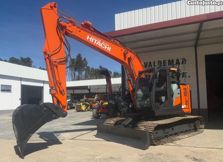 Escavadora de marca Hitachi, modelo ZX 135 US-6, do ano 2017, com 6085h, equipada com 2 linhas hidráulicas auxiliares, engate rápido hidráulico, balde de escavação e lamina (bulldozer). Excelente estado.