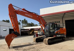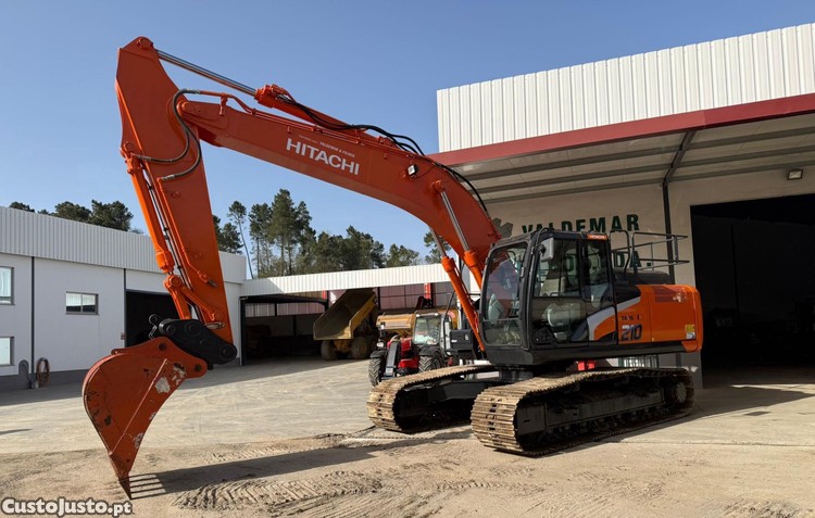 Escavadora de marca Hitachi, modelo 210 LC-6, do ano 2019, com 5629h, equipada com linha de martelo, engate rápido hidráulico e um balde de escavação novo.