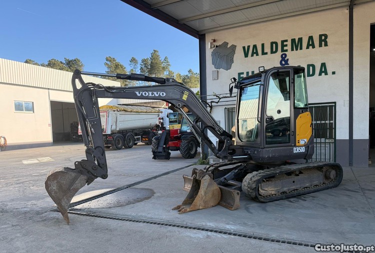 Mini escavadora de marca Volvo, modelo ECR 50 D, do ano 2018, com 3222h, equipada com linha de martelo, engate rápido hidráulico e 2 baldes.