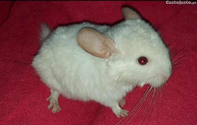 Chinchila femea branca albina (olhos vermelhos) com 3 meses, nascida a 20DEZ2025.