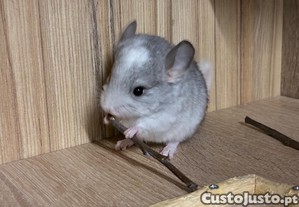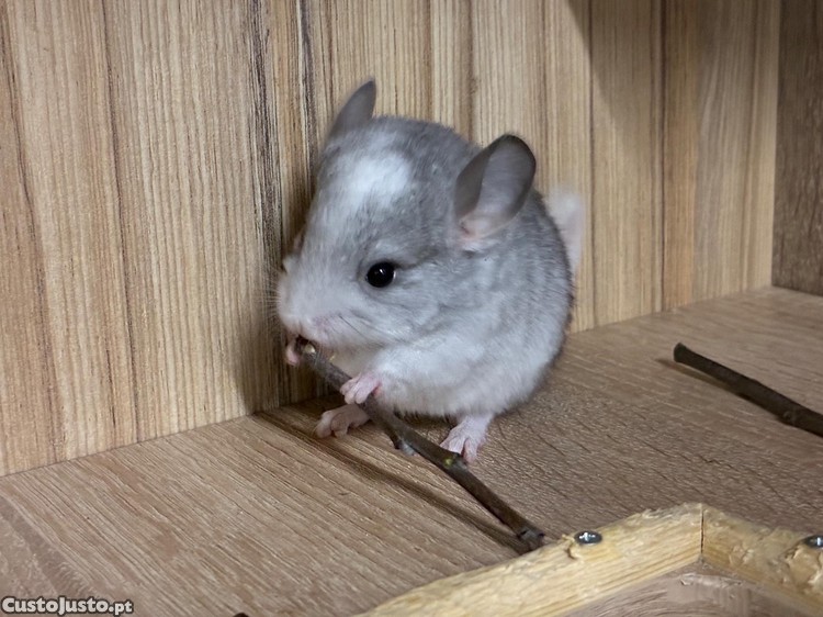 Chinchila bebe macho nascida a 13/03/2026 vai estar desponivel a partir de maio. Otimo animal de estimação muito meiguinho habituada ao colo. Não deitam cheiro! So entrego pessoalmente na zona de leiria, não faço envios!