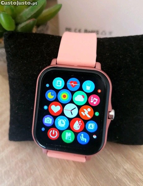 - Muito completo com contador de passos/distância, batimentos cardíacos, mensagens, clima, controlo de musica, registo de sono, aplicações de redes sociais, alarme...