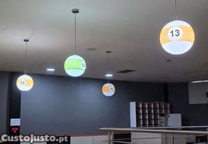 Candeeiros em forma de bola de snooker. Proporcionam um ambiente divertido e único, em qualquer espaço. O preço é por cada um.