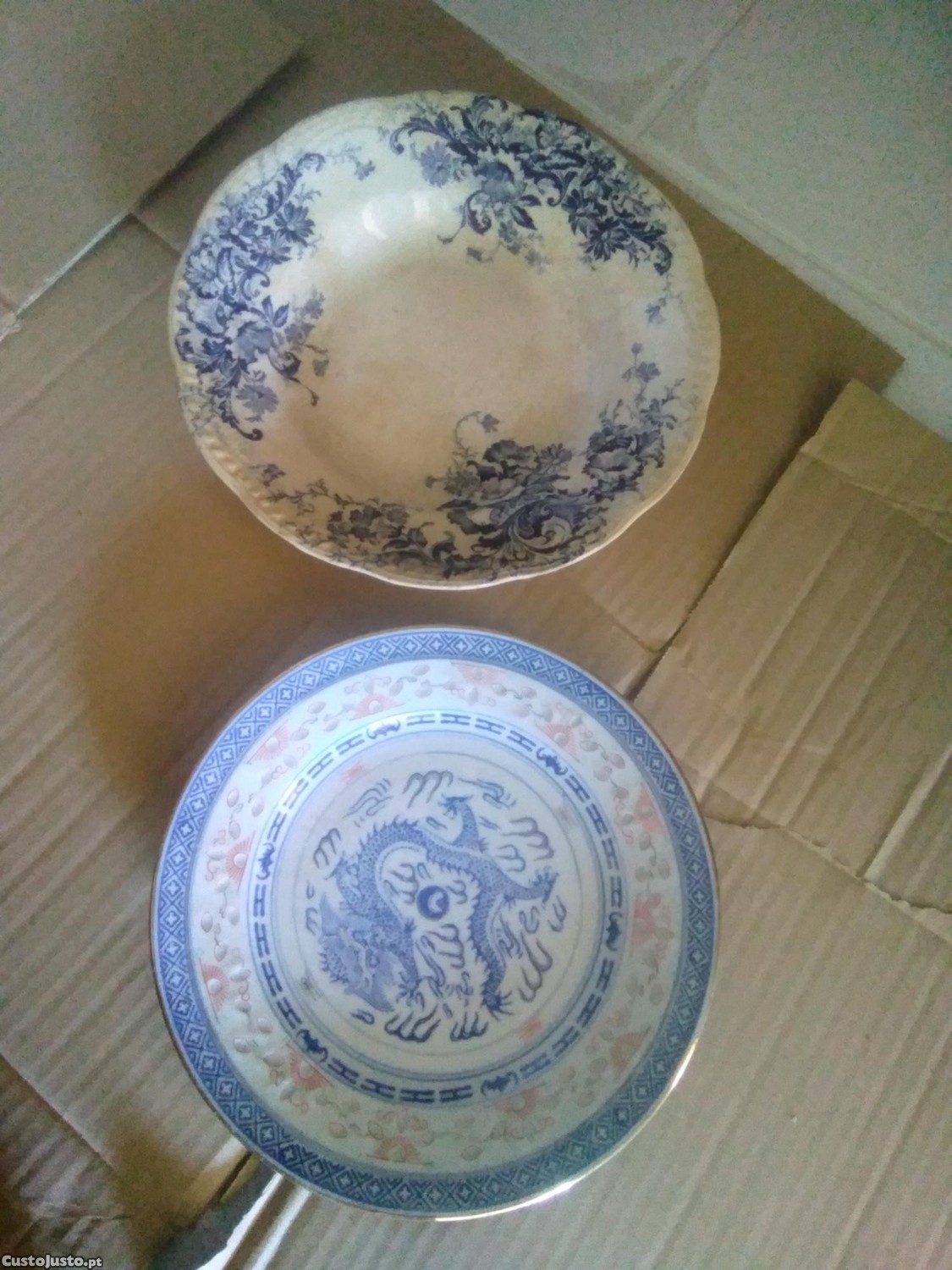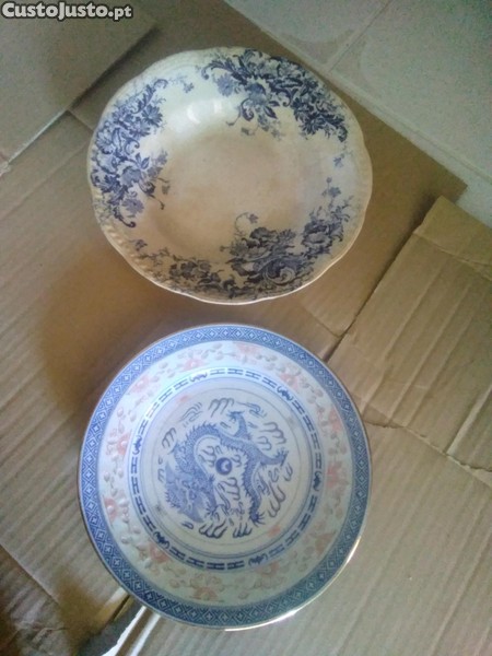Dois pratos e jarra, com alguns anos