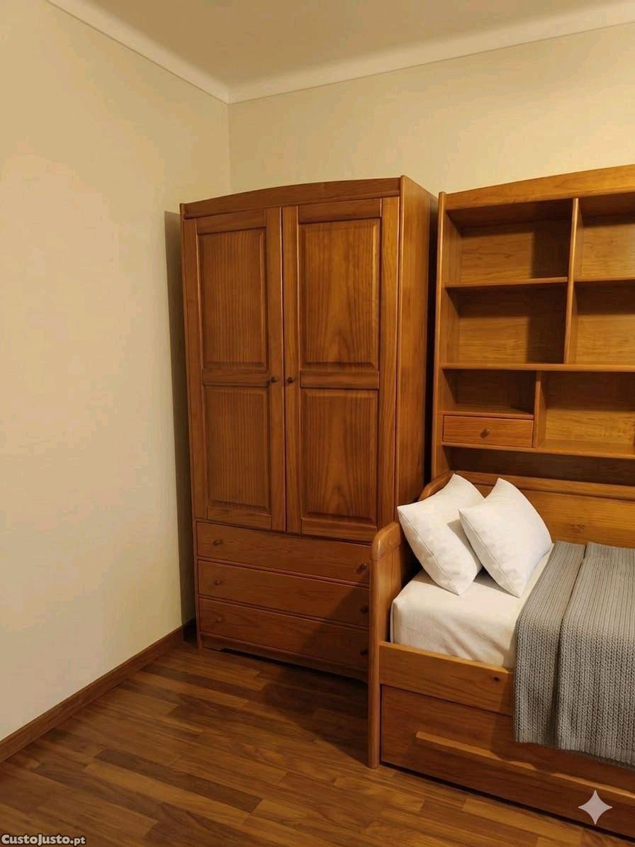 Estúdio completo com duas camas, uma delas gavetão, 2 colchões de espuma, roupeiro e escrivaninha