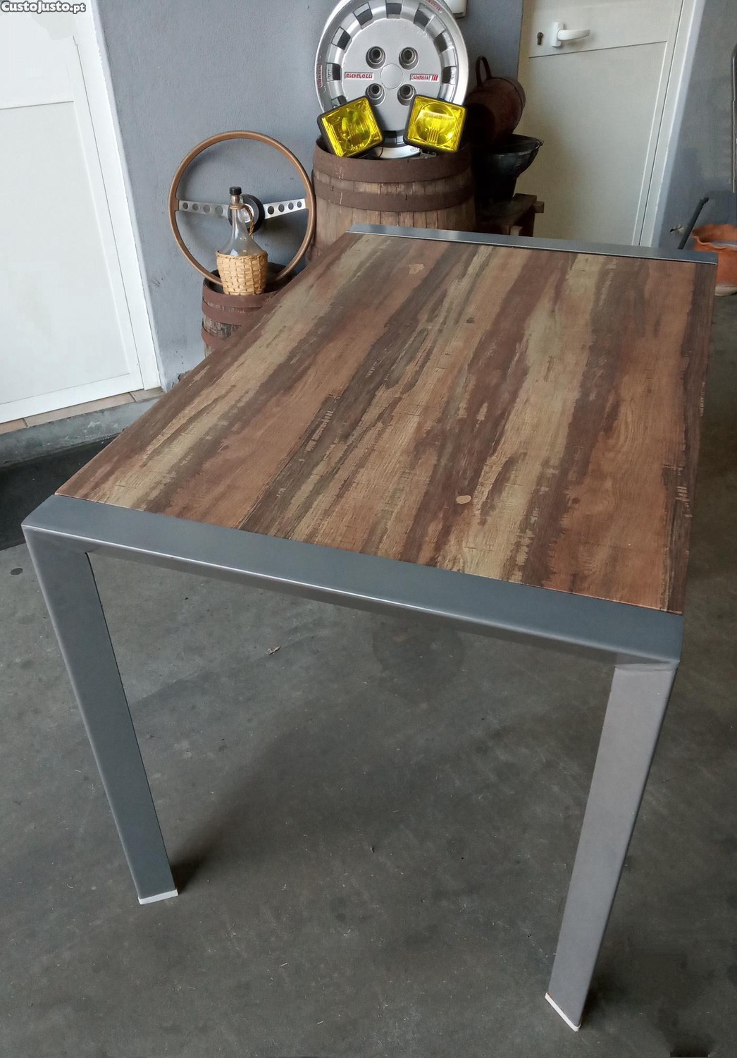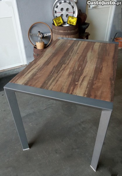 Disponível Pratica Mesa de Jantar ou Jardim em Metal e Folheado de Madeira Rústica.