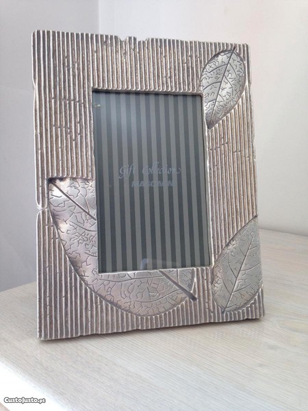 Moldura elegante em "metal pesado" trabalhado e decorado com relevos.