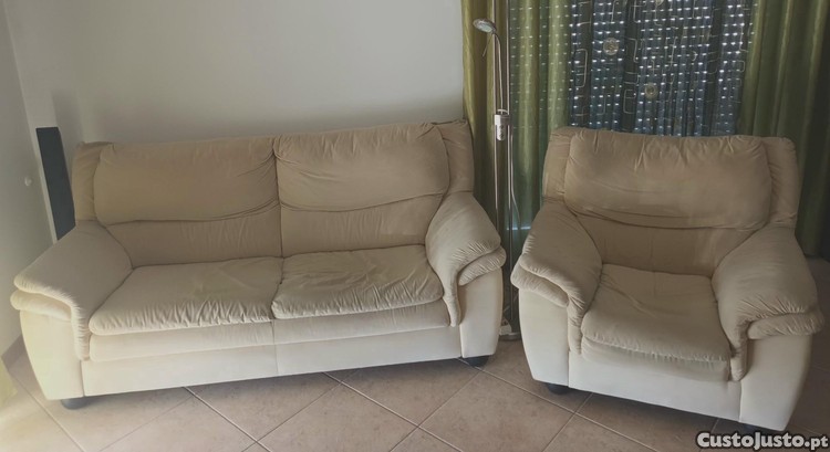 Por motivo de troca por um sofá maior, vendo conjunto sofas 3 + 1 lugares, cor beje, em tecido "cortisane", em bom estado e confortáveis.