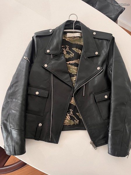 Blusão em pele de bovino, estilo rock & roll