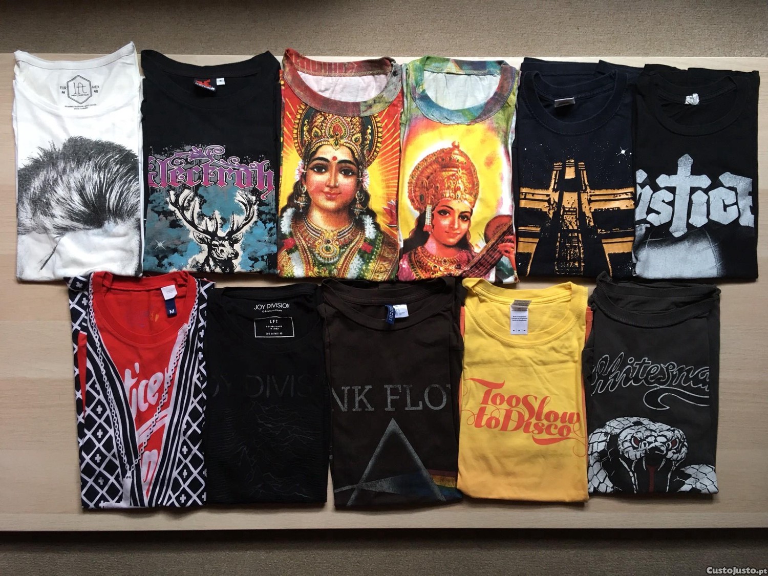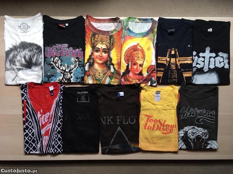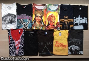 Várias t-shirts para homem de várias bandas e editoras.