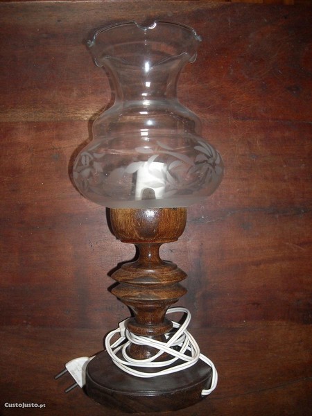 Candeeiro Vintage vidro com base em madeira