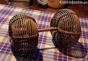 Chocalho / roca em vime de duplo cesto - instrumento musical tradicional africano - como novo