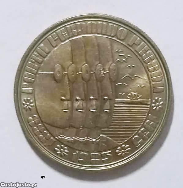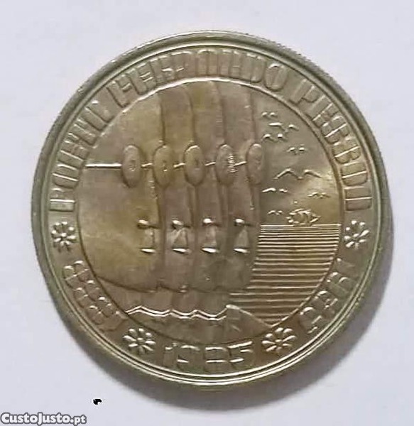 Esta moeda é uma peça de colecionismo portuguesa de 100 Escudos, emitida em 1985 para homenagear o poeta Fernando Pessoa.