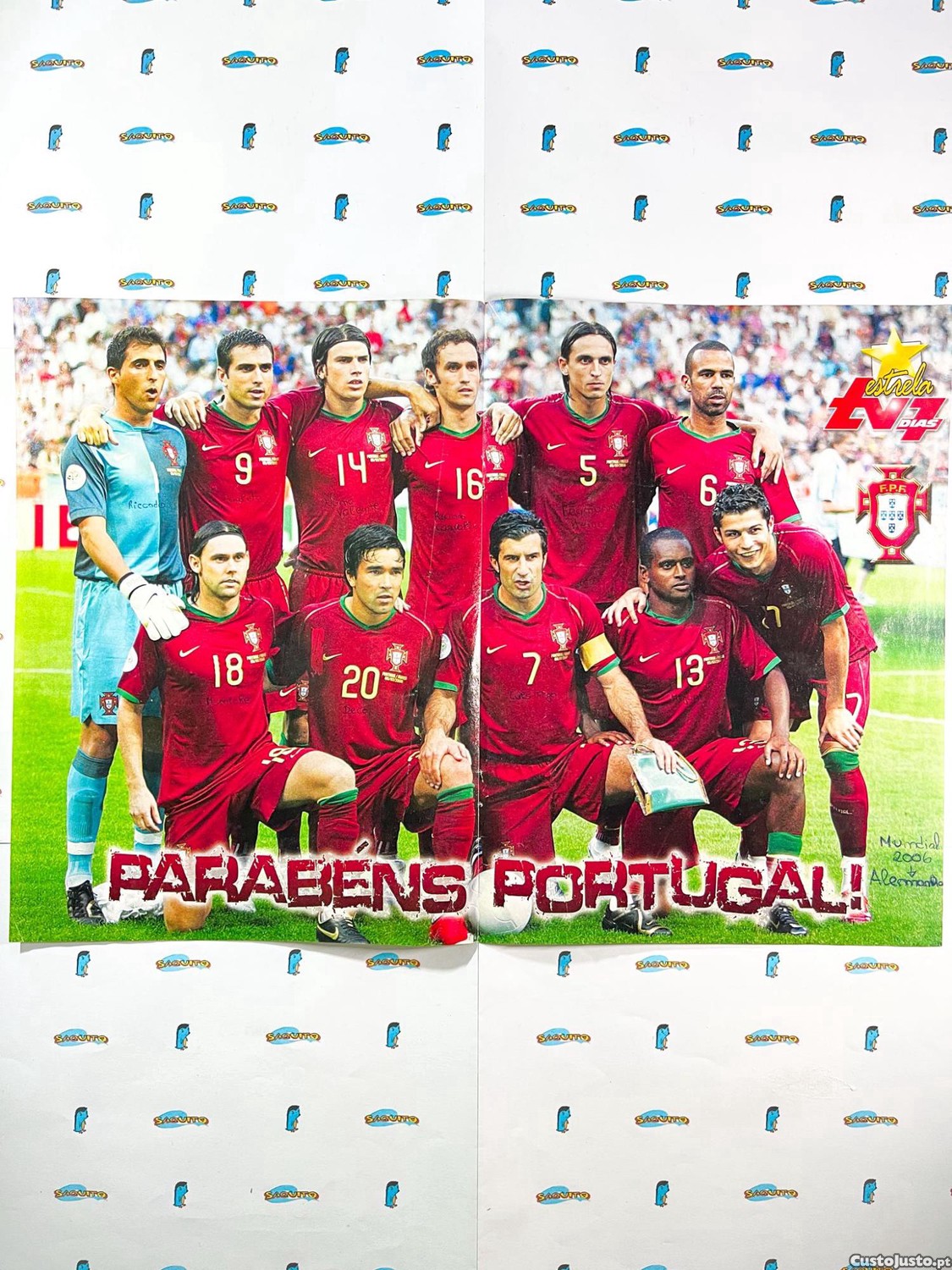 Póster de futebol do plantel de Portugal no Mundial de 2006 na Alemanha, proveniente de revista
