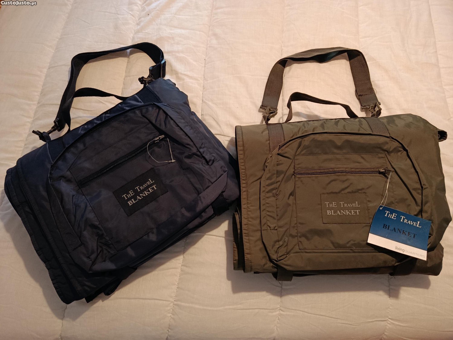 Preço: 40 €Mantas cobertores de viagem alça tiracolo e revestimento impermeavel