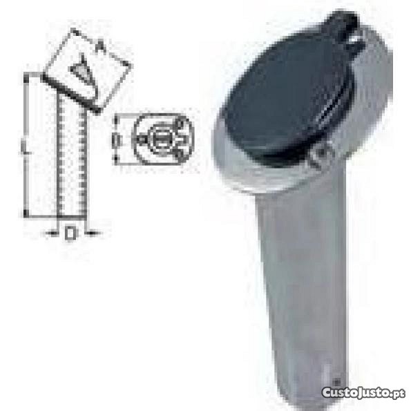 A Nautifish tem para venda o suporte de cana em aço inox com as seguintes medidas L 24,5 cm, A 11,5 cm, B 9 cm e D 5cm.