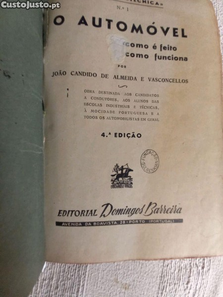 O autor é João de Almeida e Vasconcelos, e a Editora é a Editorial Domingos Barreira. O termo "o automóvel" refere-se ao livro "O Automóvel: como é feito, como funciona", publicado pela editora Domingos Barreira em várias edições, a partir de 1 9 3 8. Também há a publicação "O Exame de Condutor de Automóveis" do mesmo autor e editora.