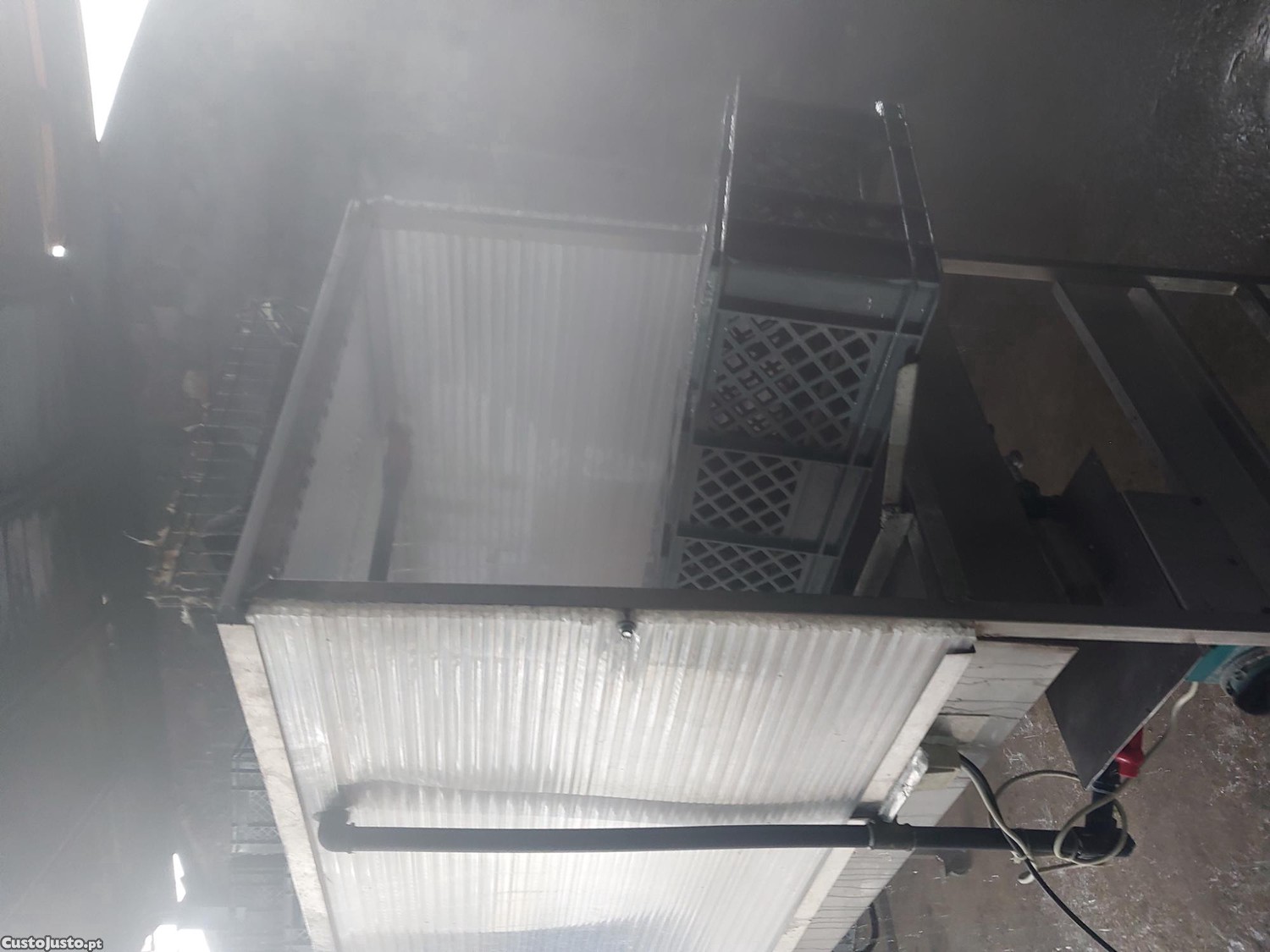Vendo estrutura adaptada para lavar e desinfetar caixas à pressão, com possibilidade de regulação para medidas diferentes. Ideal para armazéns que reutilizem caixas de frutas e outros fins.