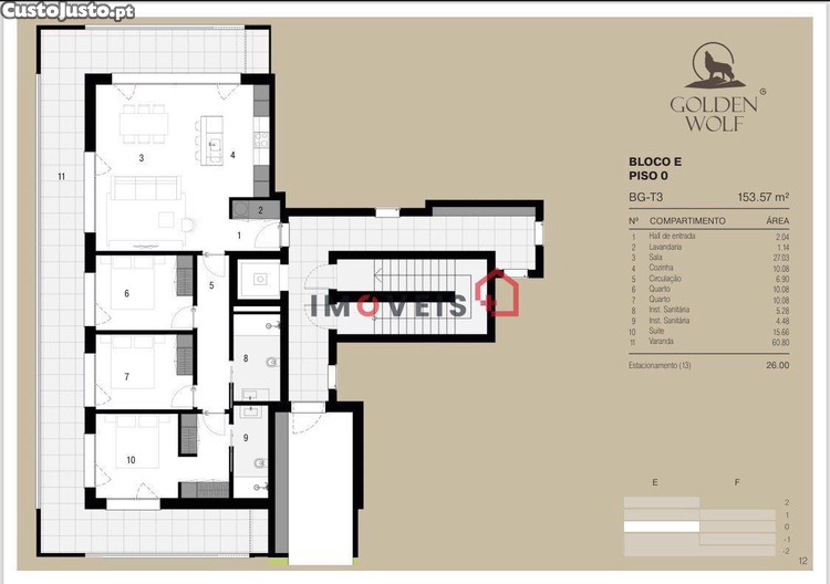 Apartamento T3 no edifício Golden Wolf no Telheiro, Leiria, a poucos minutos do centro da cidade e em zona de comercio, serviços, escolas e transportes.