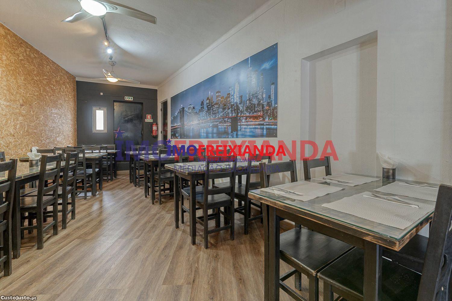 Conta ainda com um balcão vitrine, ventilada e com refrigeração e esplanada exterior para 40 lugares sentados.