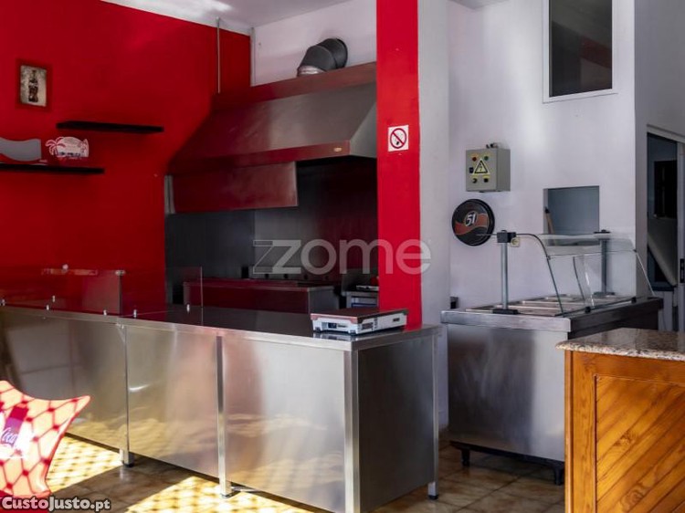 Neste momento a loja esta equipada com equipamento hoteleiro para funcionar como churrasqueira take-away, grelhador, balcão de atendimento, frigorifico, congelador e cozinha equipada.