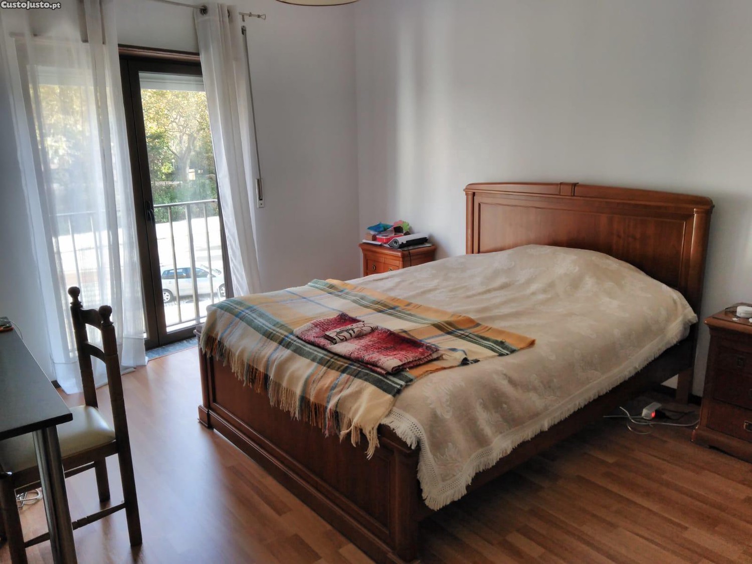 Quarto mobilado, com grande roupeiro, varanda de sacada e vista sobre a cidade, só senhoras com emprego, em apartamento de 1º andar, ambiente tranquilo, serventia de casa de banho e cozinha equipada com fogão, 2 frigorificos, microondas, máquina de lavar roupa, internet, quintal com estendal de roupa, vista sobre a cidade, muito perto do shoping la vie e da praça da fruta.