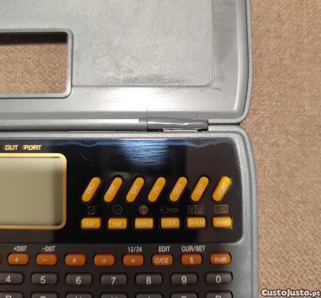 Tradutora eletrónica de bolso, é um pequeno computador tradutor com calculadora e funções de agenda, típico dos anos 90.