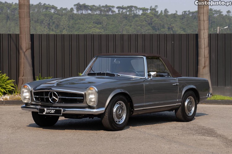 MERCEDES SL 280 "PAGODE" W113 170CV 1969 - O Modelo SL da geração W113, foi inicialmente apresentado ao público no Salão Automóvel de Genebra em 1963 e foi produzido até 1971. Os principais designers foram Paul Bracq, Béla Barényi e Friedrich Geiger, que criaram também uma capota rígida patenteada no desenvolvimento do modelo, ligeiramente côncava, que inspirou o apelido de "Pagode". O estilo da frente, apresenta os faróis verticais em forma de "aquário" da Bosch e uma grelha cromada simples, dominada pela grande estrela de três pontas no painel frontal, prestou homenagem ao 300 SL Roadster. Foram comercializadas 3 versões do modelo, o 230, 250 e 280. O SL280 foi o último e mais potente a ser comercializado, foi apresentado apenas em Dezembro de 1967 e esteve em produção até Fevereiro de 1971. Equipa uma Motor 6 Cilindros 2.778cm3 M130, com Injeção Mecânica Bosch e uns impressionantes 170cv. Este Exemplar equipa uma Caixa Manual 4 velocidades, que era uma opção de Fábrica e muito procurada atualmente. Apresenta-se numa condição Restaurado e em magnifico estado de conservação . Versão Europeia, foi Vendido e entregue Novo na Alemanha . Apresenta-se numa Elegante combinação, com exterior em Cinza "Graphite", com capota Soft Top em Castanha e com Bancos em Castanho" Havana Brown ", com centro dos bancos em Pele perfurada e carpete em "Honey Brown". A nível de equipamento, especial destaque para : 511 - Rádio Becker // 531 - Antena // AC // Hard Top + Soft Top // Direção Assistida.* Este anúncio foi publicado por rotina informática, todos os dados carecem de confirmação junto do vendedor.