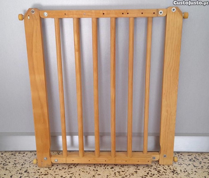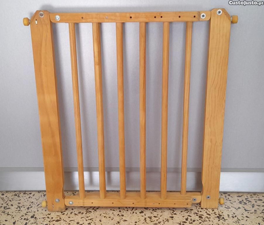 Grade de Segurança, 'Briconord', em madeira, tom carvalho, sistema extensível à largura da porta, com apoios de borracha, A75 x C69cm (extensível a C105cm), excelente estado.