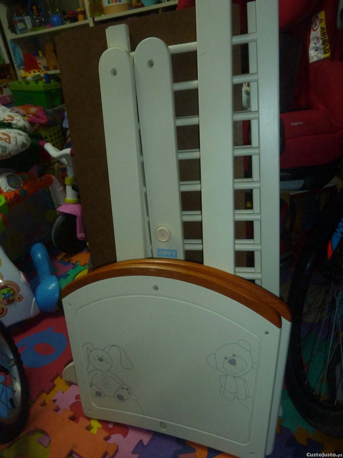 Pequeno berço de madeira da Zippy, em bom estado. Não tem parafusos.
