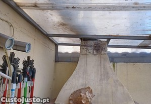 Estou a vender uma cobertura de um terraço de cerca de 15m2 em placas de policarbonato alveolar , composto por uma placa com a medida 193x180 . 3 placas 155x90 e 120x193 , com 7 pilares em ferro pintado em cinzento 154 comp., 3 com 142 , 1 comp. 178 , 1 comp. 160 e ainda possuo 5 janelas em aluminio - 1 - com 150x063 e 4 com 080x022. Ainda tenho 2 placas totalmente novas com 300x160.
