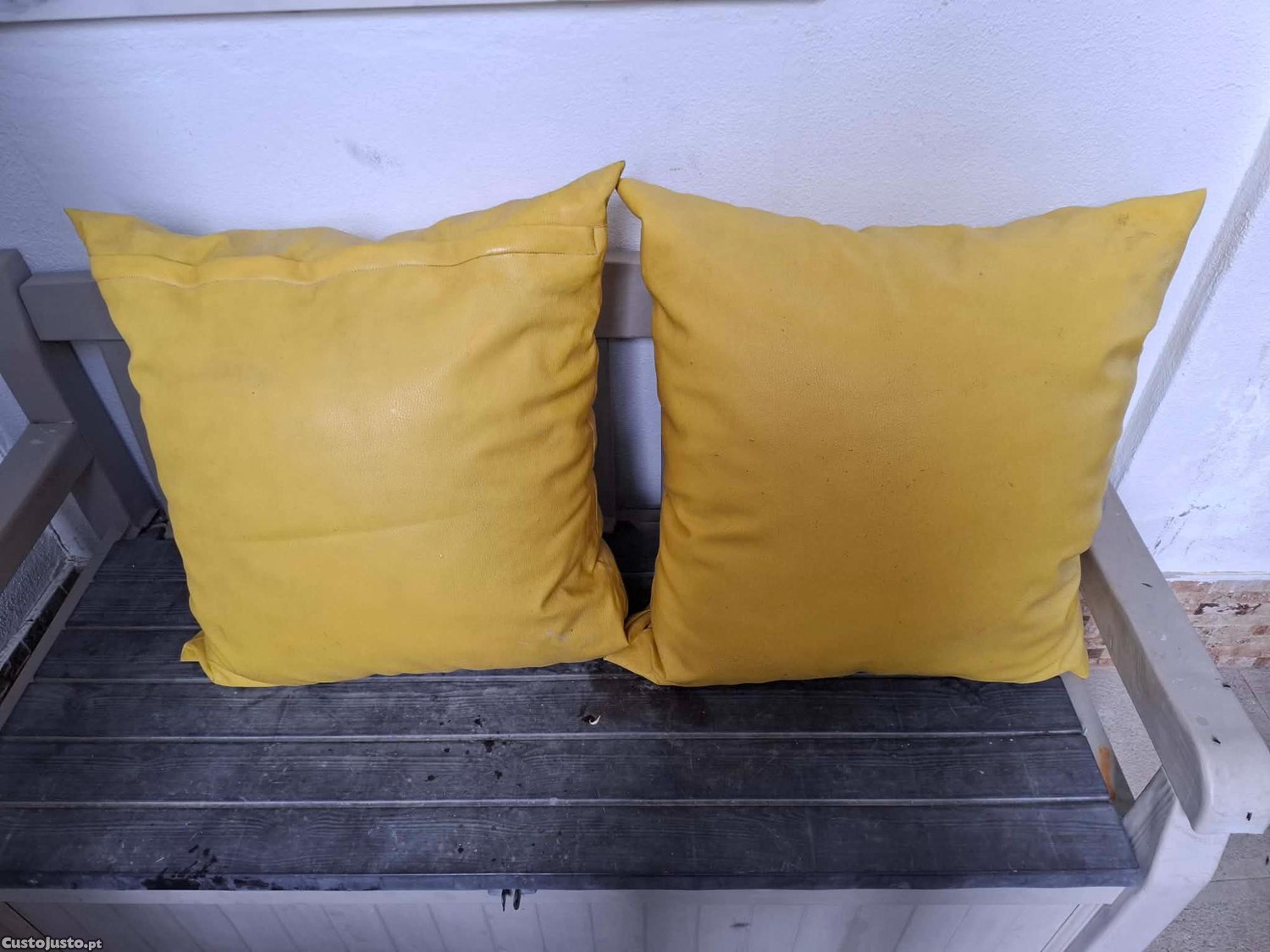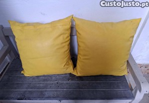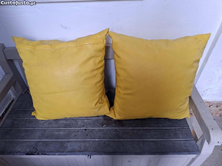 Conjunto de dois almofadões de cor amarela. Estes almofadões podem ser utilizados em sofás, cadeirões ou até mesmo no exterior para criar um ambiente acolhedor e confortável no seu jardim, alpendre, etc.. Medidas: 60cmx60cm
