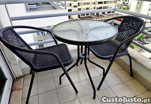 1 mesa e 2 cadeiras de jardim , atualmente numa varanda. 3 anos de uso esporádico.