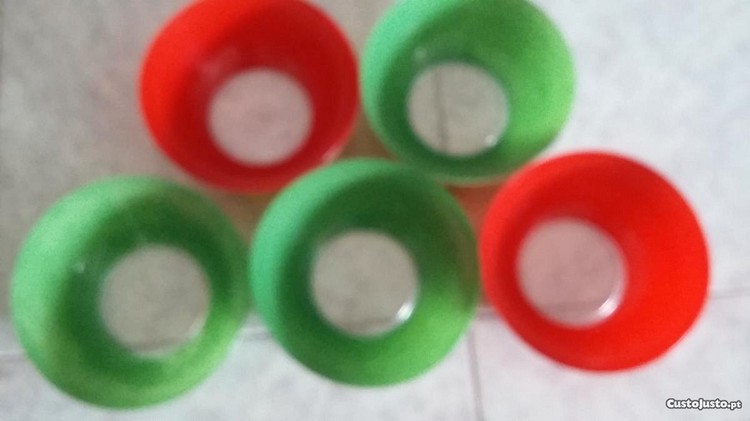 Vendo cinco tigelas antigas em vidro colorido . Duas vermelhas e três verdes.
