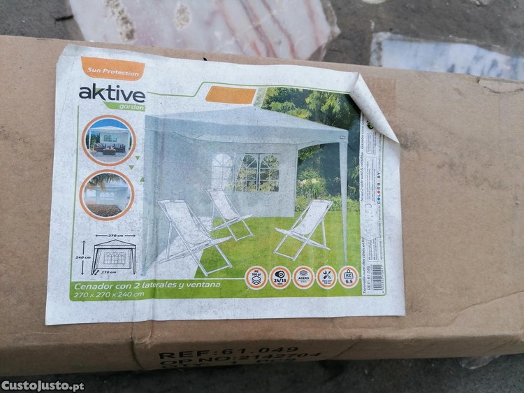 Vendo um Toldo de Jardim com 2 laterais e janela, praticamente novo e sem uso ( apenas foi usado duas vezes ), com todo o material e acessórios na caixa original, por apenas 50 euros ( valor fixo ).