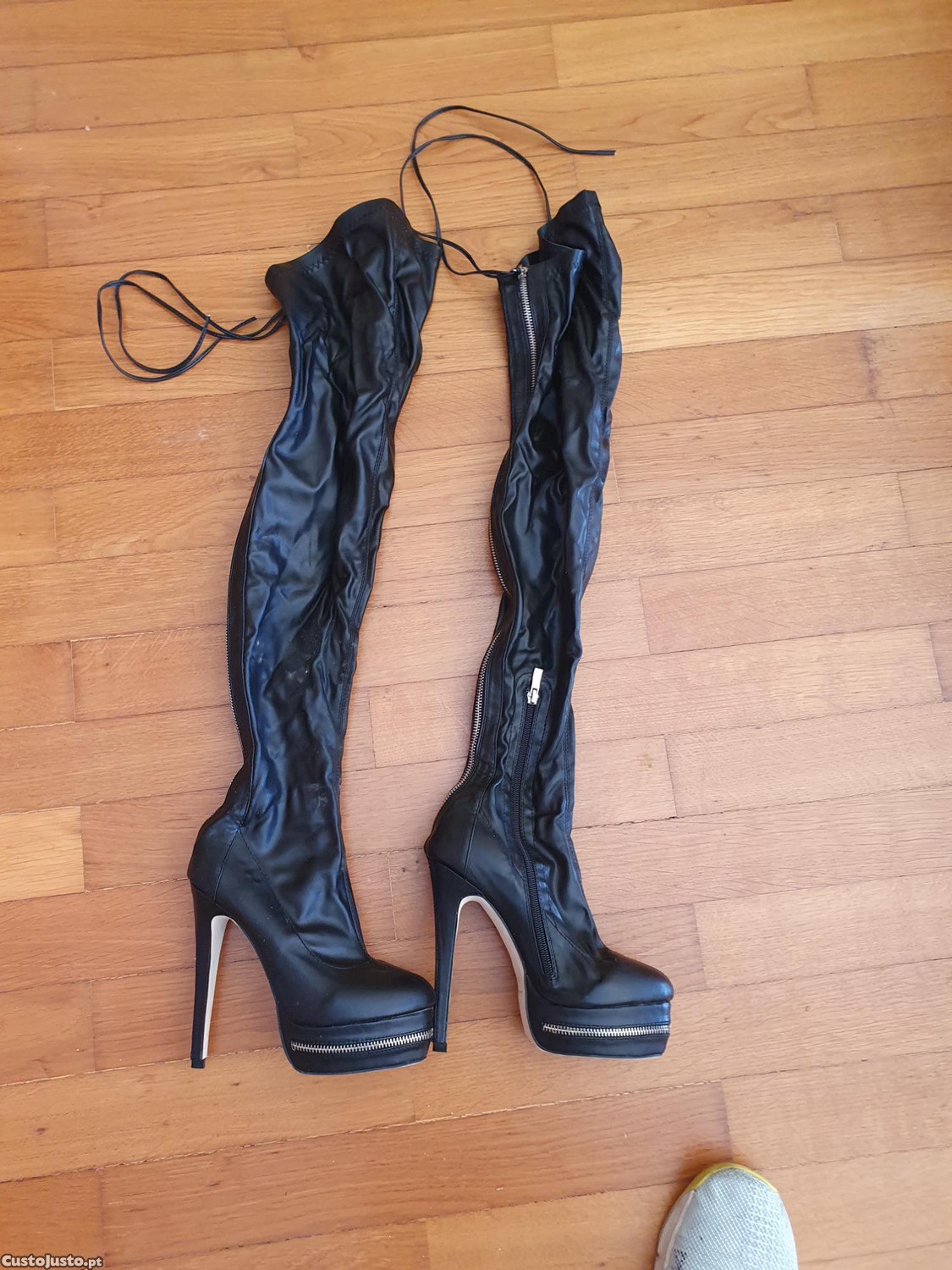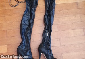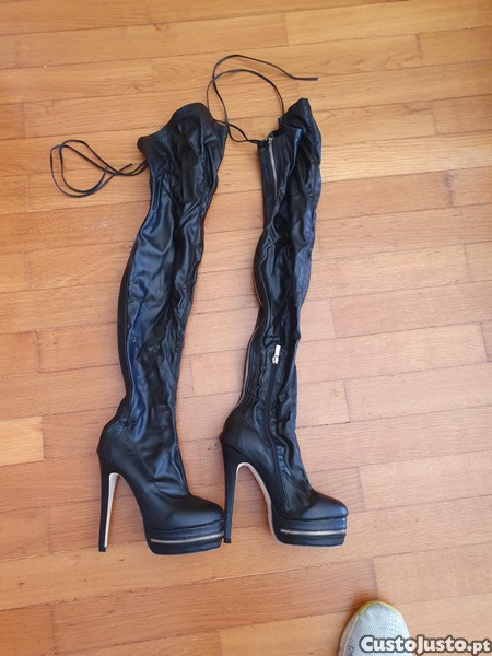 Botas de salto alto compensadas, tamanho 37, em preto, confortáveis.