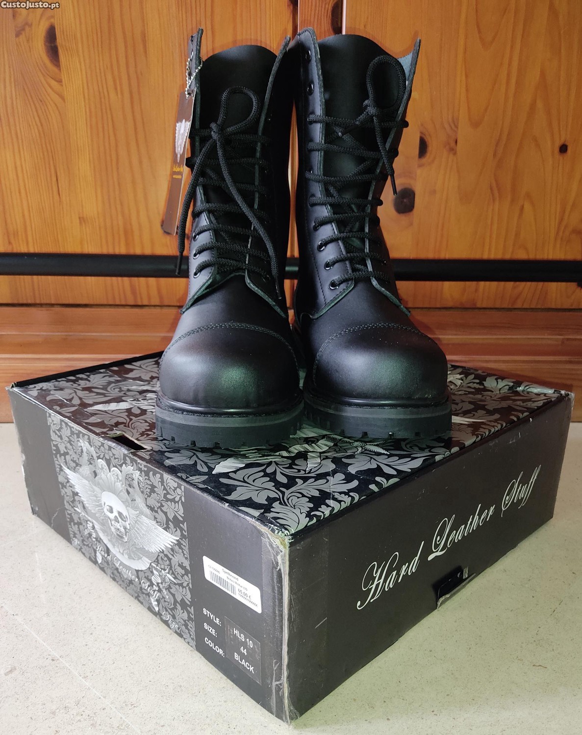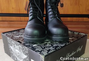 Botas da marca- "Hard Leather Stuff" (tipo militar) novas/a estrear, tamanho 43, com biqueira de aço. O preço é fixo e não inclui portes, se for o caso.