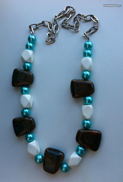 Preço: 15 €Colar com pedras azul turquesa, branco e castanho