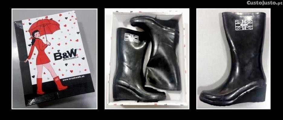 Galochas 'Break & Walk', n.º 37, com cunha, em preto, extremamente confortáveis, na caixa, excelente estado.