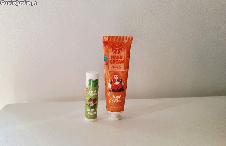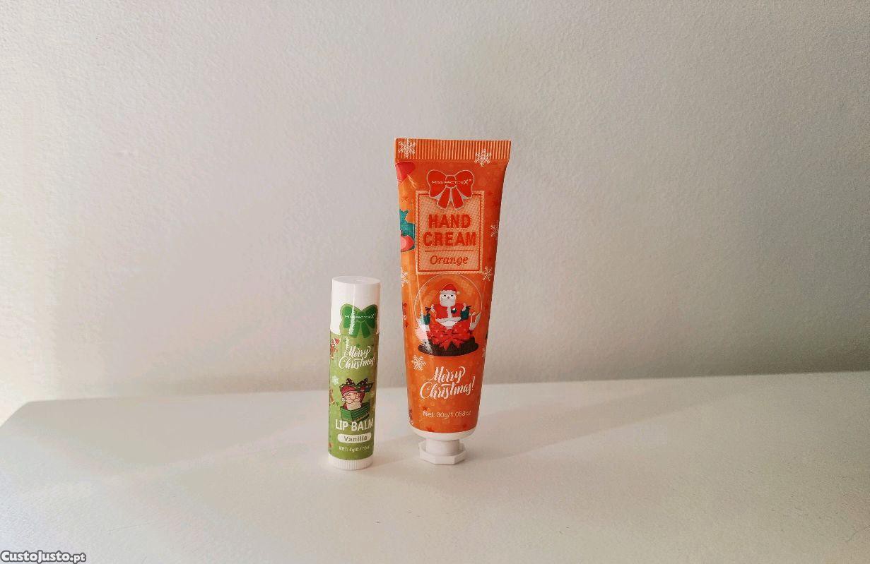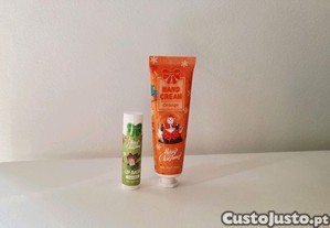 Kit da Miss Factor X composto por um creme de mãos (laranja) e um batom hidratante (baunilha).