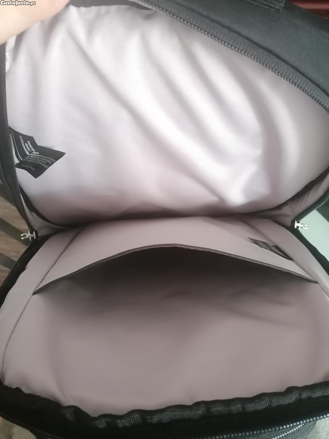 É resistente à água, alças alcochoadas e ajustáveis, painel traseiro com