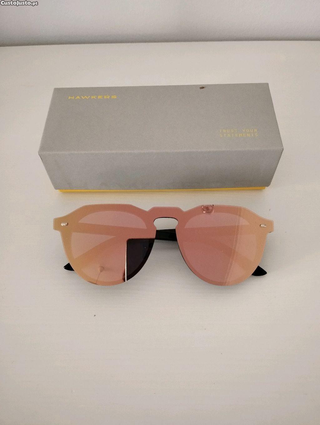 Óculos de sol em excelente estado, vêm numa elegante caixa da marca Hawkers. Proteção UV garantida para os seus olhos. Estilo e funcionalidade num só acessório.