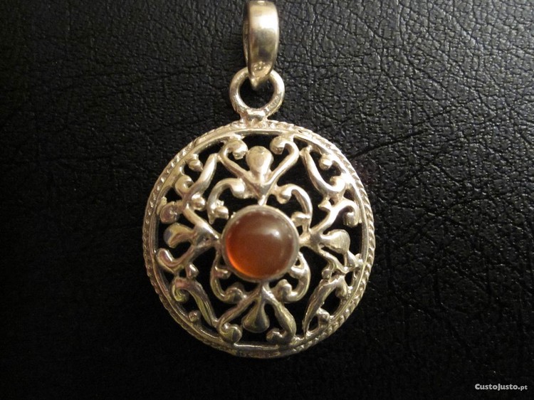 Preço: 15 €Pendente Prata Lei Cabeça Águia pedra castanha